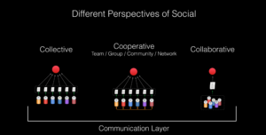 The Collective social tools focus on gathering information and knowledge with an aim of being complete and having a full understanding. It is a tool type important for law firms, research and development, competitive assessment, brainstorming, general research, and more. Those people whom are participating are not necessarily focussed on others, but on capturing information and knowledge with a focus on completeness.